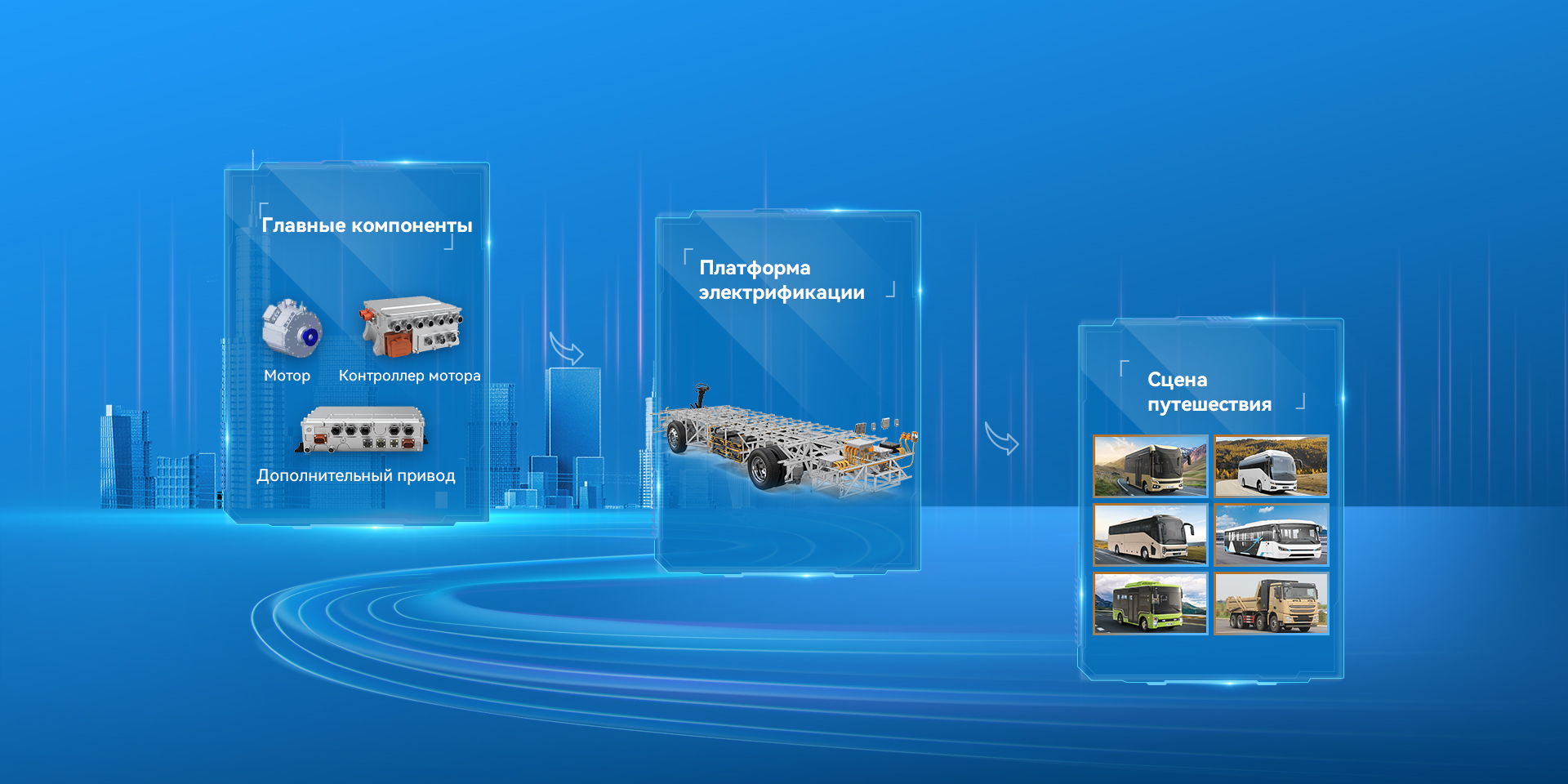 Охватывая всю сферу коммерческого транспорта, движущие платформы электрификации и компоненты с автомобилями
